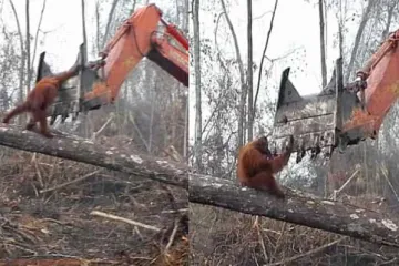 Ինդոնեզիայում օրանգուտանը պայքարի է բռնվել էքսկավատորի հետ՝ փորձելով խոչընդոտել անտառահատմանը (տեսանյութ)
