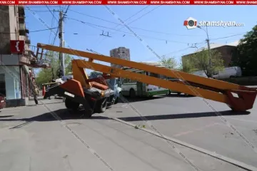 Արտակարգ դեպք Երեւանում. բեռնատարի վրա տեղադրված վերամբարձիչն ընկել է միկրոավտոբուսի վրա