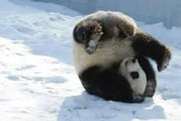 Պանդայի ուրախությունն առաջին ձյունը տեսնելուց