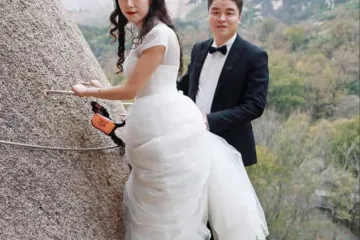 Չինացի նորապսակները կախվել են 100 մետրանոց ժայռից ու էքստրեմալ հարսանեկան ֆոտոշարք արել (լուսանկարներ)