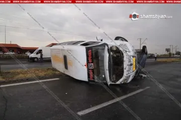 Արմավիրում բախվել են «ԳԱԶ-2112»-ն ու մարդատար «ԳԱԶել»-ը. «ԳԱԶ»-ը գլխիվայր շրջվել է, «ԳԱԶել»-ը՝ կողաշրջվել