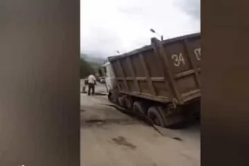 Արտակարգ դեպք Վանաձորում. Բեռնատարի ծանրությունից ասֆալտը բացվել է, մեքենան ընկել է մեջը (Տեսանյութ)