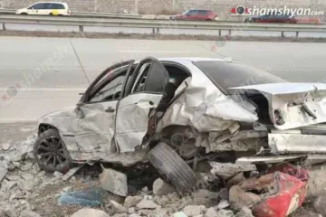 ՊՆ ծառայողը BMW-ով բախվել է գազալցակայանի պատին և հայտնվել քարերի վրա. կա վիրավոր