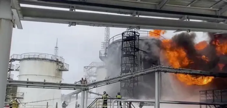 Ավելի վաղ ուկրաինական Exilenova+ մոնիտորինգային Telegram-ալիքը հայտնել էր նավթաբազային հասցված հարվածի մասին և հրապարակել կադրեր, որոնցում հսկայական հրե սյուն է երևում հարվածի վայրում: