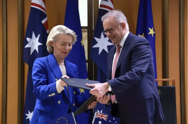 Եվրամիությունը և Ավստրալիան ազատ առևտրի շուրջ նոր համաձայնագիր են ստորագրել, որի համաձայն կրճատվում է ավստրալական ապրանքների նկատմամբ մաքսատուրքերի մեծ մասը, հաղորդում է BBC-ն։ Ավստրալիայի վարչապետ Էնթոնի Ալբանիզիի և Եվրահանձնաժողովի նախագահ Ուրսուլա ֆոն դեր Լայենի ստորագրած համաձայնագրի արժեքն է մոտ 7 միլիարդ դոլար։ Կողմերը համաձայնագիրը համարել են փոխշահավետ։