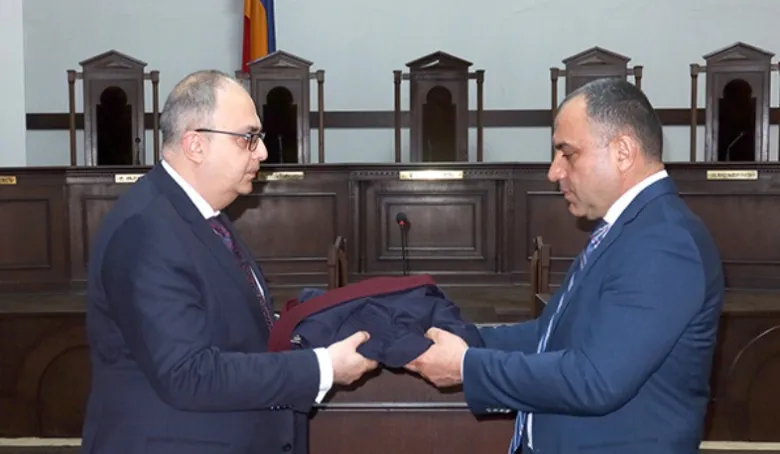 Միջոցառման ընթացքում Սահմանադրական դատարանի դատավոր Վլադիմիր Վարդանյանին հանձնվեցին Սահմանադրական դատարանի դատավորի պատմուճանը: