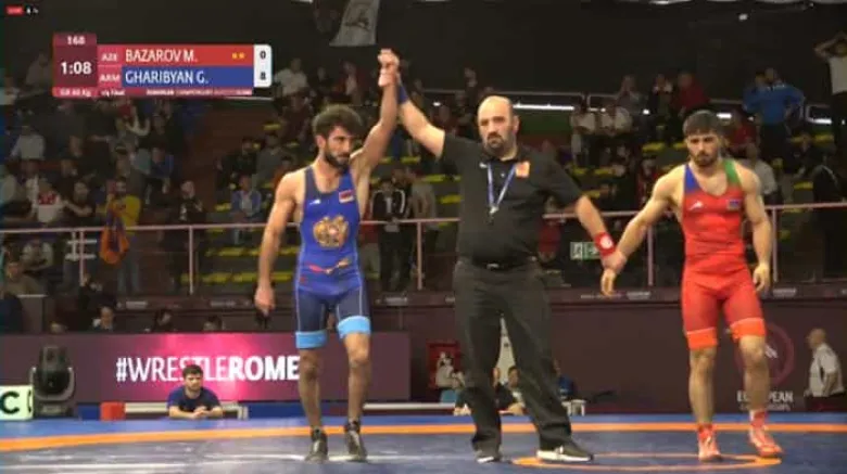 Հռոմում ընթացող հունահռոմեական ըմբշամարտի Եվրոպայի առաջնությունում 60 կգ քաշային կարգի քառորդ եզրափակիչում Հայաստանի ներկայացուցիչ Գեւորգ Ղարիբյանը 8:0 հաշվով գեղեցիկ հաղթանակ տարավ Ադրբեջանի ներկայացուցիչ Մուրադ Բազարովի նկատմամբ: