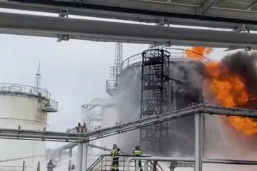 Ուկրաինական ԱԹՍ-ների հարձակման հետևանքով հրդեհ է բռնկվել նավթաբազայի տարածքում