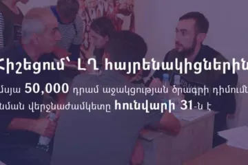50 հազար դրամ աջակցության ծրագրի դիմումների ընդունման վերջնաժամկետը հունվարի 31-ն է