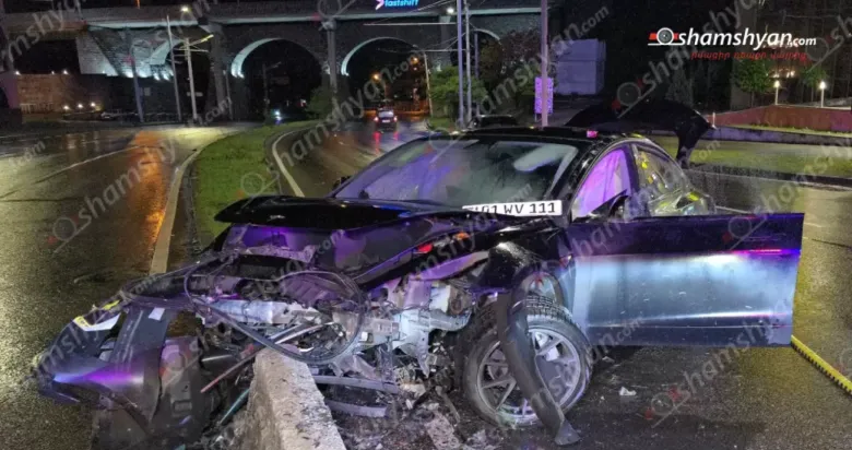 Երևանում «Tesla»-ն բախվել է բազալտե եզրաքարին և հայտնվել հանդիպակաց երթևեկելի գոտում. կա տուժած