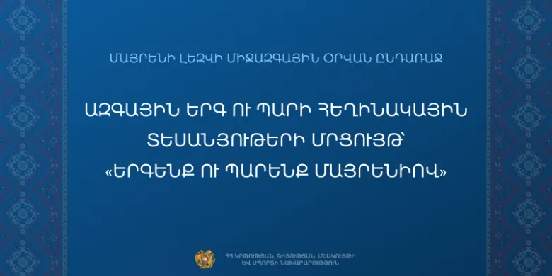 Ամփոփվել է Մայրենի լեզվի միջազգային օրվա կապակցությամբ ՀՀ կրթության, գիտության, մշակույթի և սպորտի նախարարության և Լեզվի կոմիտեի կազմակերպած «Երգենք ու պարենք մայրենիով» խորագրով հեղինակային տեսանյութերի մրցույթը, որին մասնակցել է շուրջ 500 հանրակրթական դպրոց: