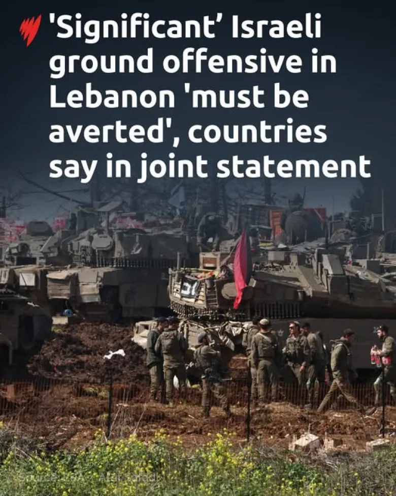 Իսրայելի լայնածավալ ցամաքային հարձակումը Լիբանանում «Հեզբոլլահ»-ի դեմ աղետալի հումանիտար հետևանքներ կունենա և կարող է հանգեցնել երկարատև հակամարտության: Այս մասին ասվում է Կանադայի, Ֆրանսիայի, Գերմանիայի, Իտալիայի և Միացյալ Թագավորության ղեկավարների համատեղ հայտարարության մեջ։ Կանադայի վարչապետի գրասենյակի հրապարակած հայտարարության տեքստում ասվում է, որ ղեկավարները «լրջորեն անհանգստացած են Լիբանանում բռնության սրմամբ» և Իսրայելի ու Լիբանանի պաշտոնյաներին կառուցողական փոխգործակցության կոչ են անում՝ կայուն քաղաքական լուծում մշակելու նպատակով։