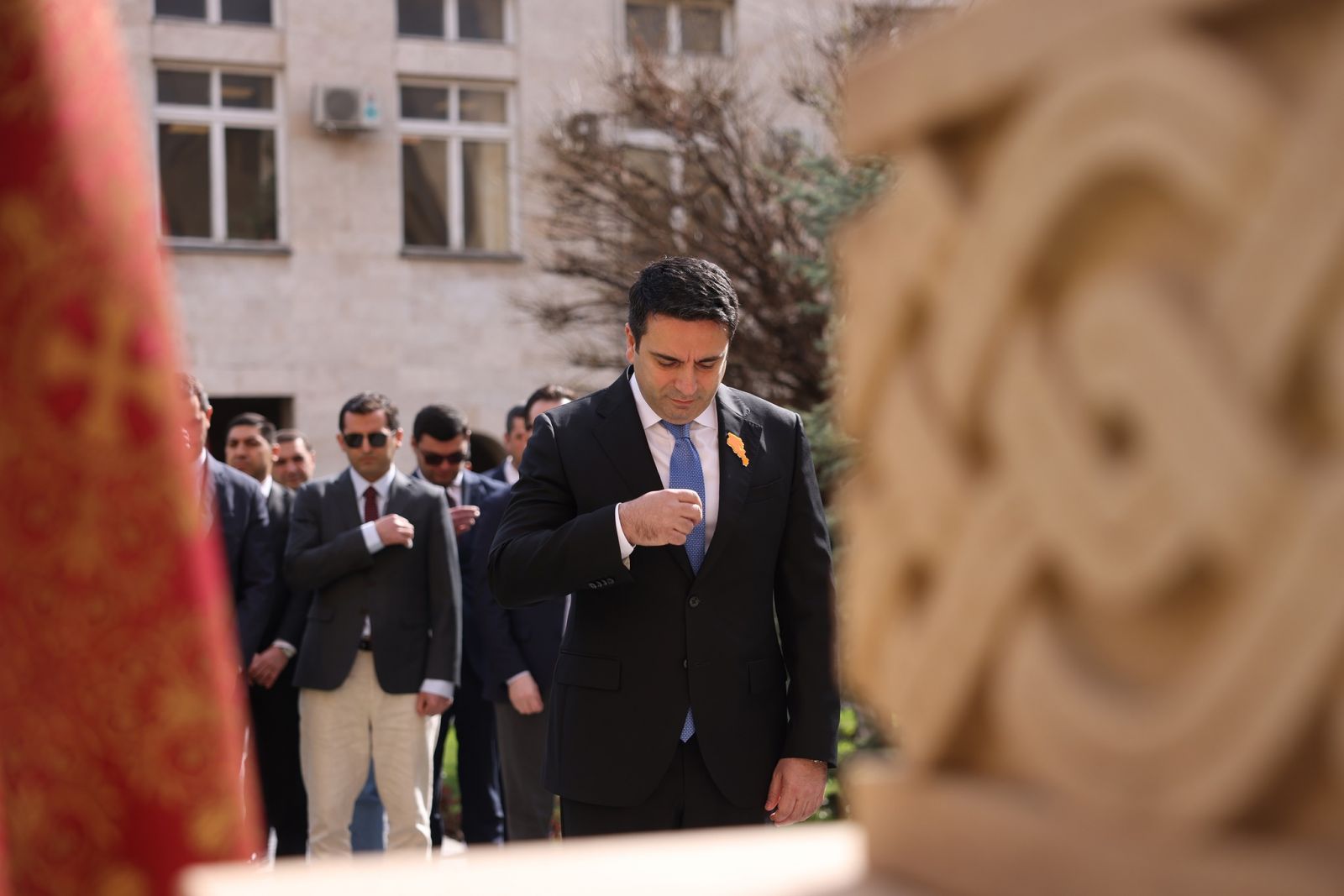 The Armenian National Assembly President Alen Simonyan, the NA Vice Presidents Ruben Rubinyan and Hakob Arshakyan, the Head of the NA Civil Contract Faction Hayk Konjoryan, the NA Chief of Staff, Secretary General Davit Arakelyan and representatives of the Staff laid flowers at the monument installed in the National Assembly Park.