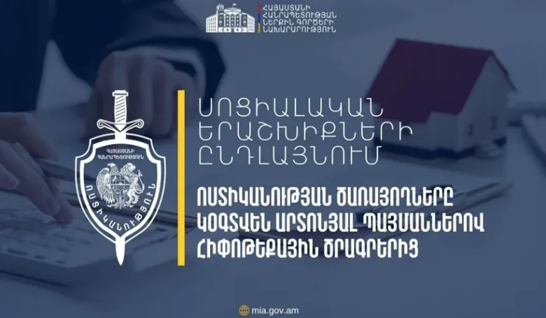 Կառավարությունը հավանություն է տվել ՆԳ նախարարության օրենսդրական նախաձեռնությանը, ըստ որի՝ Ոստիկանության ծառայողները կկարողանան բնակարան կամ բնակելի տուն ձեռքբերելու կամ բնակելի տուն կառուցելու նպատակով օգտվել մատչելի և արտոնյալ պայմաններով հիփոթեքային վարկավորման պետական նպատակային ծրագրերից։ Այդ մասին հայտնում են ՆԳՆ-ից։