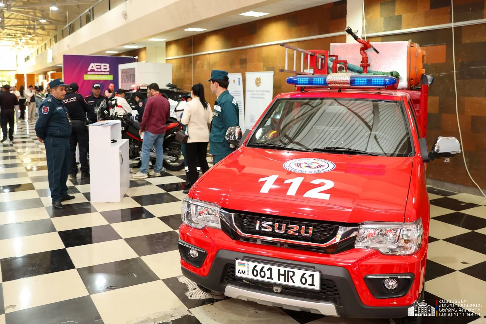 ՆԳ նախարարության տաղավարում այցելուները հնարավորություն ունեին ծանոթանալու ոչ միայն Պարեկային և Փրկարար ծառայությունների տեխնիկական հագեցվածությանը, այլև ծառայողների հետ զրուցելու ոլորտներում մասնագիտական աճի և կարիերայի առաջխաղացման հնարավորությունների մասին։