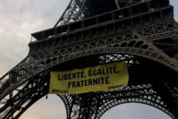 Էյֆելյան աշտարակի վրա Լե Պենի դեմ ուղղված պաստառ են կախել