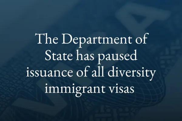 The Department of State has paused issuance of all diversity immigrant visas (Green Card.)