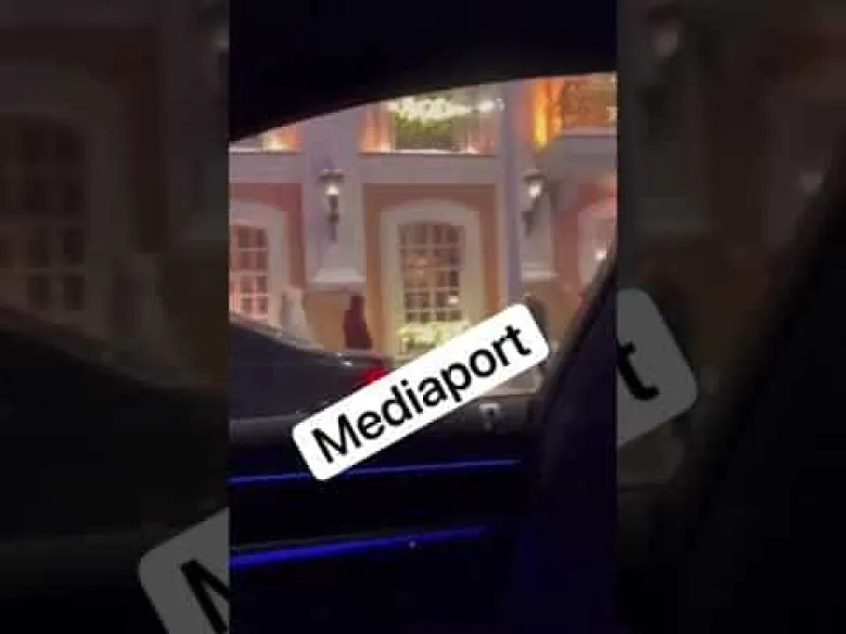 Նրանց ուղեկցող փարոսիկներով մեքենաները կայանված են ռեստորանի մուտքի մոտ: