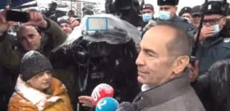 Քիչ առաջ ՀՀ երկրորդ նախագահ Ռոբերտ Քոչարյանը դուրս եկավ Շնեգավիթի առաջին ատյանի դատարանի շենքից, որտեղ ընթանում է Մարտի 1–ի գործով դատավարությունը և մոտեցավ առատ ձյան պայմաններում իրեն աջակցելու եկած քաղաքացիներին։