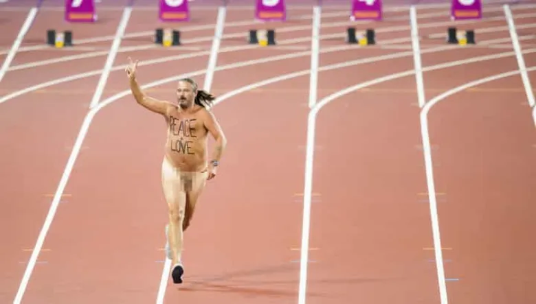 Մերկ տղամարդու պատճառով՝ քիչ է մնացել ձախողվի Լոնդոնում ընթացող թեթև աթլետիկայի աշխարհի առաջնության եզրափակիչը։ 100 մ տարածությունում մրցավազքի մեկնարկից մեկ րոպե առաջ նա դուրս է եկել վազքուղի։ Նրա մեջքին և կրծքավանդակին պացիֆիստական կարգախոսներ են գրված եղել։ Այս մասին հայտնում է Россия 24-ը։