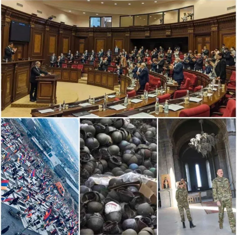 Սա Հյուսիսային Կորեան չէ, սա Հայաստանի Հանրապետությունն է որի կառավարությունն ու խորհրդարանը հոտնկայս ծափահարում են պատերազմի 44 օրերի ընթացքում ժողովրդին խաբած, կապիտուլյացիոն պայմանագրով Արցախի, Սյունիքի ու Գեղարքունիքի բարձունքները թշնամուն հանձնած դավաճան կապիտուլյանտին: