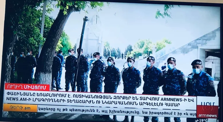 Այս անվերջանալի ոստիկանական պատը երկու կնոջ դեմ է, երկու լրագրողի, որ հողատուին չմոտենան Եռաբլուրում, որ հանգիստ պղծի տղերքի գերեզմանը մայիսի 9-ով։
