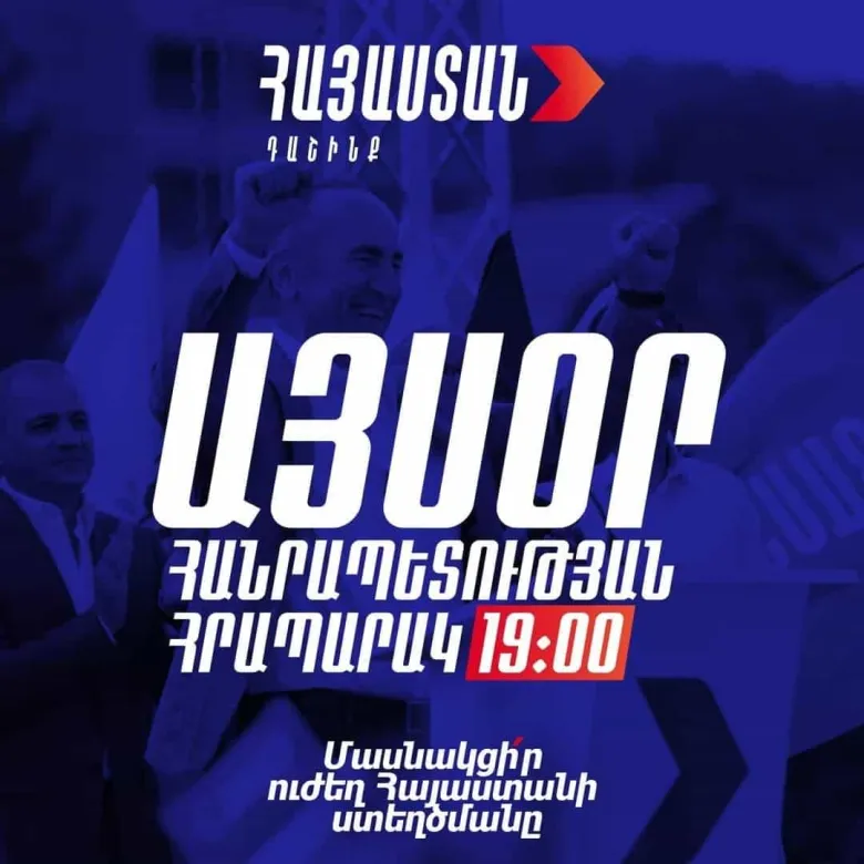 Այսօր ձեր եւ առաջին հերթին նրանց փոխարեն ժամը 19.00-ին եղեք Հանրապետության հրապարակում։ Եկեք Հանրապետության հրապարակ, որ մեր տղերքի երկրային կյանքերն ընդհատած տականքներն ավելի ճլորեն, ավելի սարսափեն ու մտքներով չանցնի 21 -ին արյուն թափել։