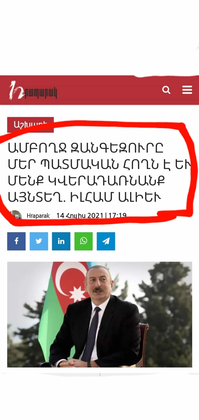 Եթե որևէ մեկը կասկածում է, որ սա ադրբեջանցիների զառանցանքներն են , ապա չարաչար սխալվում է... Բաքուն նույնն էլ ասում էր հայկակակն Արցախի մասին, որի մեծ մասը որպես նվեր ստացավ Նիկոլ Անհողի կողմից...