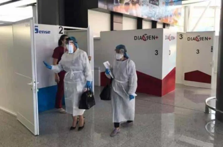 Ժամանման սրահի կենտրոնում սպիտակ խալաթներով մարդիկ են տեղակայված: Առաջին հայացքից՝ բժիշկներ են: Բայց նրանց գործողություններին մի փոքր հետևելով անմիջապես հասկանում ես, որ սպիտակ խալաթով ոստիկաններ են: Ժամանող ուղևորին՝ մեր, մանուկ, ծեր, թոփալ, նրանք ուղղորդում են ժամանման սրահի հեռավոր անկյունները, որտեղից այնուհետև ուղևորները դուրս են գալիս թագավարակի թեստ հանձնելու մասին համապատասխան տեղեկանքով և կրկին մոտենում սրահի կենտրոնում բազմած բժիշկ-ոստիկաններին: Սրանք ուշադիր զննում են տեղեկանքը, վստահանում, որ ժամանող ուղևորն արդեն «մուծվել է» թեստի համար և «ներս» թողնում Հայաստան: Նույնն է վիճակը նաև մեկնելիս: Մինչև բացասական պատասխանով թեստի թուղթ չունենաս, թույլ չեն տա օդանավ նստել:
