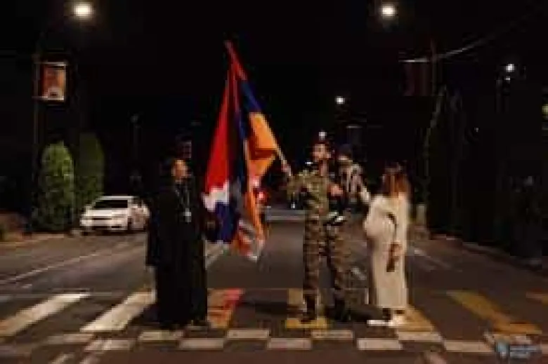 Ստեփանակերտում ջահերով երթն առաջնորդել են հոգևորականը, հղի կինը` երեխան գրկին և զինվորականը` Արցախի դրոշը պարզած. (տեսանյութ)