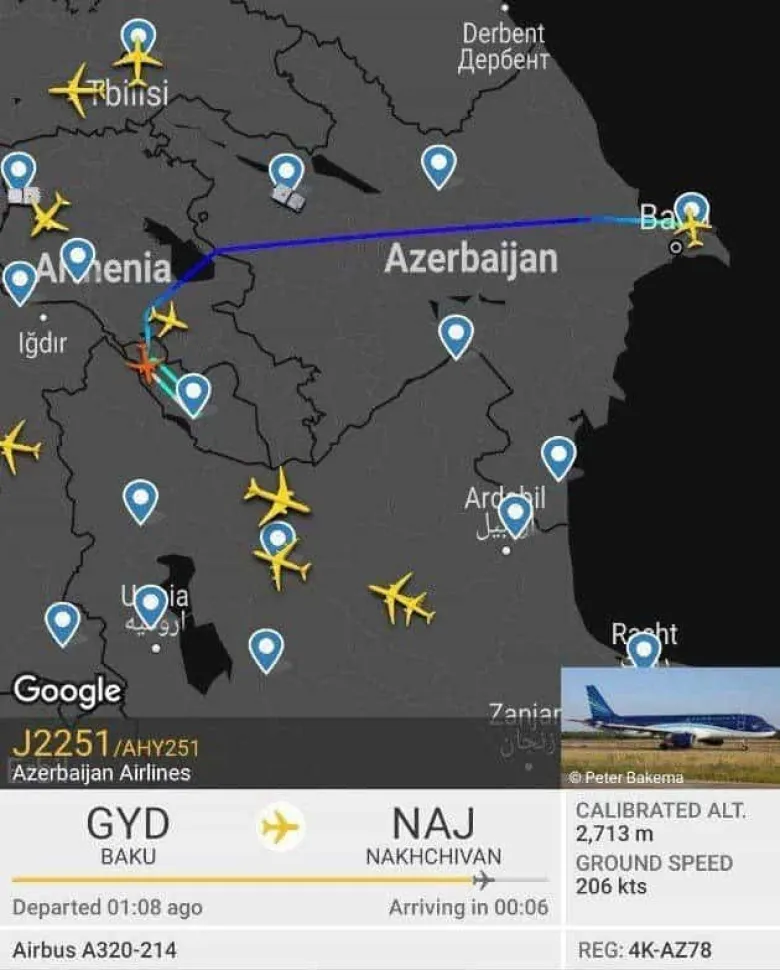 ՀՀ իշխանությունների՝ Իրանի նկատմամբ նման քայլից հետո Flightradar24 կայքում երևաց, որ Ադրբեջանը դեպի Նախիջևան թռիչքները դարձյալ սկսել է իրականացնել Իրանի տարածքով: