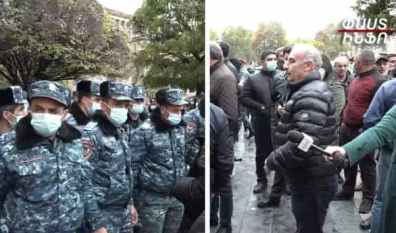 «Ես արդեն խիստ կասկածում եմ, որ հայի արյուն կա մեջներդ։ Ու՞մ եք պաշտպանում, թուրքերի՞ն։ Ո՞վ է ձեզ հրաման տվողը, Ալիև՞ը։ Թքած գործի վրա, որ հայրենիք չունեցանք, գործն ու՞մ է պետք։ Ձեզ հրաման տվողի հերն անիծեմ»,- հայտարարեց ակցիա իրականացնող քաղաքացիներից մեկը՝ դիմելով ոստիկաններին։