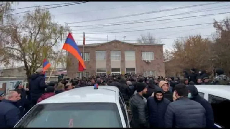 Բակում բազմաթիվ ոստիկաններ եւ քաղաքացիներ են հավաքաված: Ոստիկանները թույլ չեն տալիս, որ քաղաքացիները մուտք գործեն համայնքապետարանի շենք:
