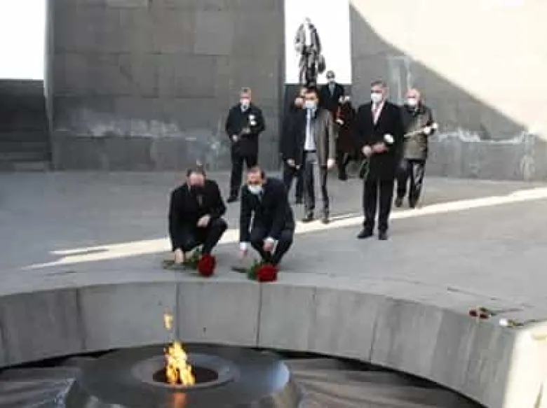 Երկու երկրների արտգործնախարարները ծաղկեպսակներ են դրել Հայոց ցեղասպանության զոհերի հիշատակը հավերժացնող հուշակոթողին, այնուհետև հյուրերը ծաղիկներ են խոնարհել անմար կրակի մոտ և մեկ րոպե լռությամբ հարգել Հայոց ցեղասպանության սրբադասված նահատակների հիշատակը: