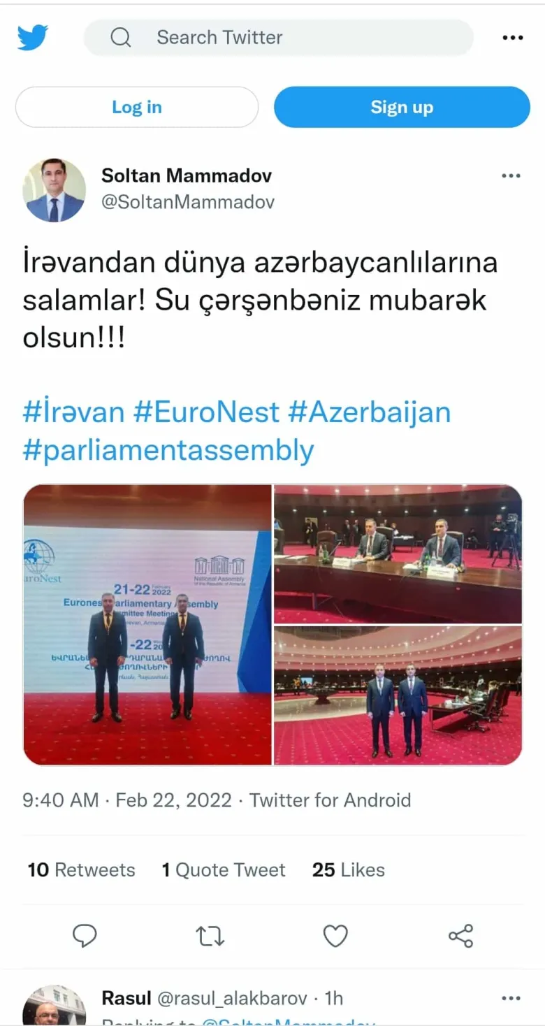 Ահա այսպիսի գրառում է արել իր թվիթերյան էջում ադրբեջանական պատգամավորը։