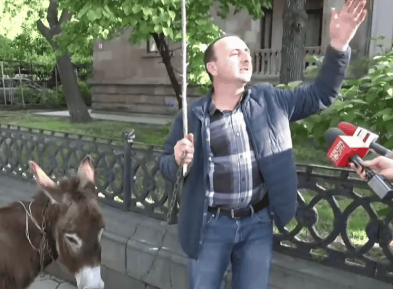 Փաշինյանի հետևից էշով եկած իջևանցին միացել է Իջևանից դեպի Երևան երթին