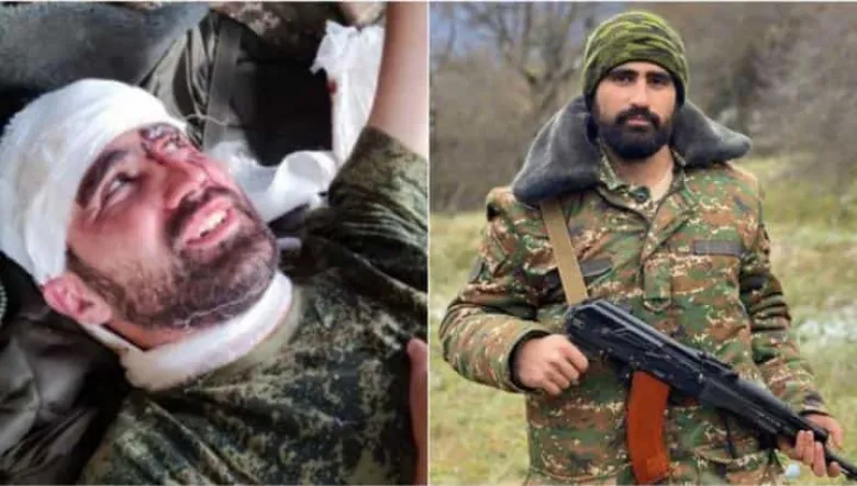 Հ․Գ․ Վիրակապով լուսանկարը՝ 44-օրյայի ժամանակ գլխի շրջանում բեկորային վիրավորում ստանալու օրերին։