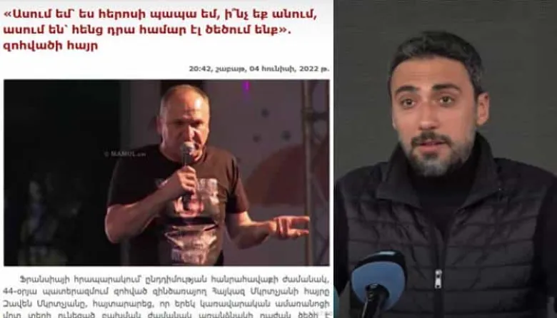 «Ոստիկանության ու իրավապահների մոտ օրենքի ճգնաժամը հաստատվում է հետևյալ փաստով. 44-օրյա պատերազմին նահատակված հերոս Հայկազ Մկրտչյանի հայրը՝ Զավեն Մկրտչյանը հայտնել է, որ «Ասում եմ՝ ես հերոսի պապա եմ, ինչ եք անում, ասում են՝ հենց դրա համար էլ ծեծում ենք»: