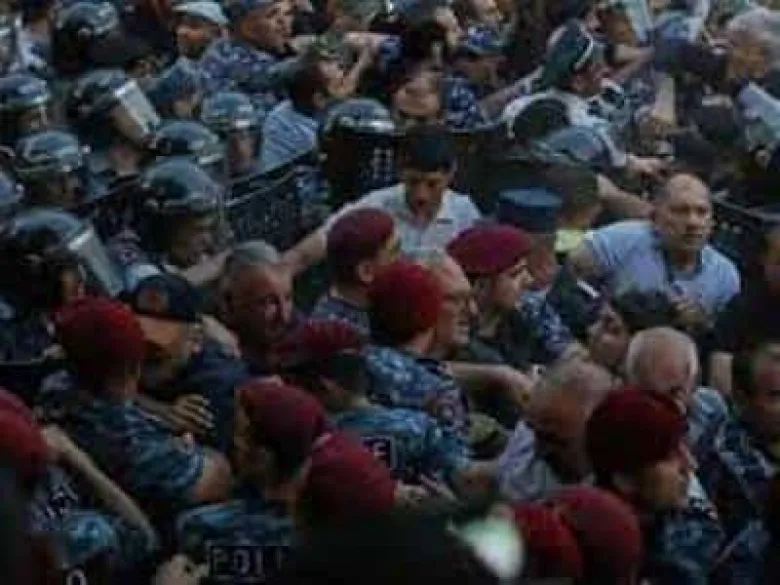 Երբ ցուցարարները ցանկանում էին շարժվել դեպի Ազգային ժողով, ոստիկանները հրաժարվել էին բացել ճանապարհը, որից հետո ոստիկանների եւ ցուցարարների միջեւ բախում էր սկսվել։ Ոստիկանները բիրտ ուժ կիրառելով, անգամ հարվածներ հասցնելով բերման էին ենթարկել բազմաթիվ ցուցարարների։ Նրանք նաեւ հատուկ միջոցներ էին կիրառել, մասնավորապես՝ ծխարձակող, լուսաձայնային նռնակներ։ Բազմաթիվ քաղաքացիների ինքնազգացողությունը վատացել է, այդ թվում՝ ոստիկանների։ Մի քանի տասնյակ քաղաքացի եւ ոստիկան տեղափոխվել է հիվանդանոց։