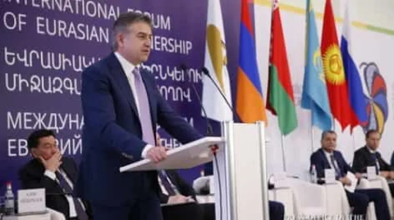 Ողջունելով մասնակիցներին և հյուրերին՝ վարչապետը համաժողովների օրակարգը չափազանց կարևոր և արդիական է համարել: Եվրասիական գործընկերության միջազգային համաժողովի մասնակիցների ուշադրությունը հրավիրելով Հայաստանում այսօր առկա հնարավորությունների վրա՝ նա նշել է. «Հայաստանը, լինելով Եվրասիական տնտեսական միության անդամ, այսօր կարող է լավ հարթակ լինել մեր բարեկամների համար և դիտարկվել ոչ միայն որպես զուտ հայաստանյան ներքին շուկա, այլև որպես հարթակ մեր հարևան երկրի՝ Իրանի հետ հարաբերությունները զարգացնելու համար: Առաջիկայում մենք ավարտում ենք Իրանի հետ ազատ տնտեսական գոտու կազմակերպման շուրջ աշխատանքները և իրանական կողմի հետ պայմանավորվում ենք սահմանին հատուկ ռեժիմի մասով: Հայաստանն այսօր ունի GSP+ և GSP արտոնյալ ռեժիմներ՝ համապատասխանաբար ԵՄ երկրների և Ամերիկայի Միացյալ Նահանգների հետ: Կարծում եմ, որ հնարավորության դեպքում ճիշտ կլինի քննարկել նաև այս աշխատանքներում մեր երկրների մասնակցության հեռանկարները»: