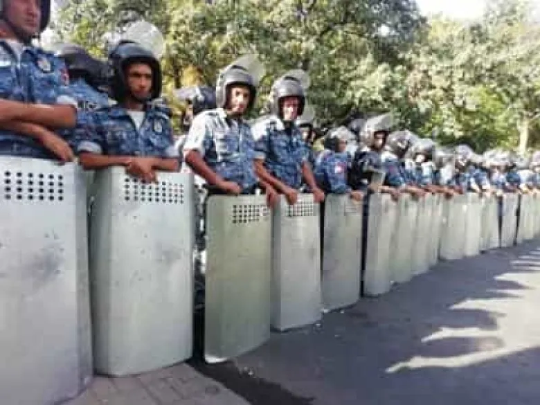 Ոստիկանները վահաններով պատ են կազմել Դեմիրճյան փողոցում ԱԺ նիստից առաջ (տեսանյութ)