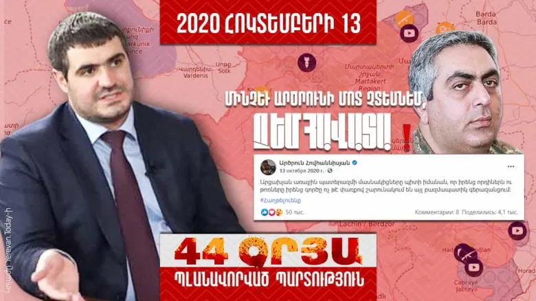 Մեկ տարի առաջ աայս օրը՝ հոկտեմբերի 13-ին, որպես պատասխան արծրունյան հերքումների, Ադրբեջանը հրապարակեց կադրեր, թե ինչպես է Հադրութում բարձրացվել այդ երկրի դրոշը։ Ոչ ոք չէր հավատում, որովհետև թեզ էր շրջանառվում՝ «Մինչև Արծրունը չասի, չեմ հավատա»։ Իսկ Արծրունի մոտ նման բաները չէին երևում։