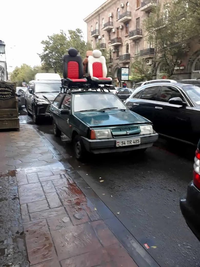 Դժվար է ասել, թե ինչու են նստարանները հայտնվել ավտոմեքենայի գլխին, բայց կարելի է կռահել, որ նստելատեղերը չեն բավականացնում: