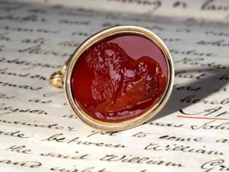 Նշվում է, որ կնիքի վրա, որը վաճառվել է 22,9 հազար ֆունտ սթեռլինգով (27,7 հազար դոլար), պատկերված են առյուծ եւ ձի: Այն երեսակել է Չառլզ Բռաունը։