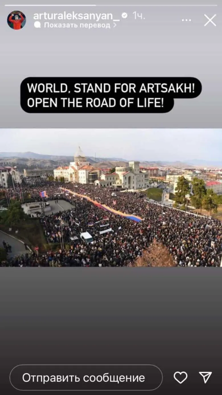 «Աշխարհ, կանգնիր Արցախի կողքին, բացիր կյանքի ճանապարհը», - հրապարակմանը կից գրել է օլիմպիական չեմպիոնը: