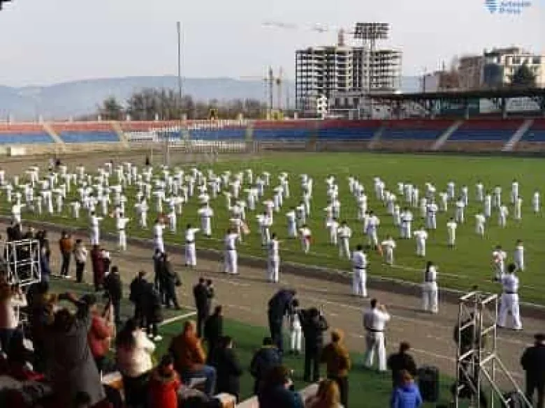 Նախօրեին՝ Ստեփանակերտի Ստեփան Շահումյանի անվան հանրապետական մարզադաշտում ավելի քան 700 արցախցի կարատեիստի մասնակցությամբ տեղի է ունեցել ֆլեշմոբ՝ Արցախը Հայաստանին և ամբողջ աշխարհին կապող միակ ճանապարհի անհապաղ բացման պահանջով։