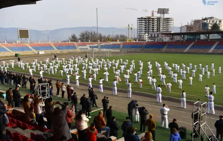 Նախօրեին՝ Ստեփանակերտի Ստեփան Շահումյանի անվան հանրապետական մարզադաշտում ավելի քան 700 արցախցի կարատեիստի մասնակցությամբ տեղի է ունեցել ֆլեշմոբ՝ Արցախը Հայաստանին և ամբողջ աշխարհին կապող միակ ճանապարհի անհապաղ բացման պահանջով։