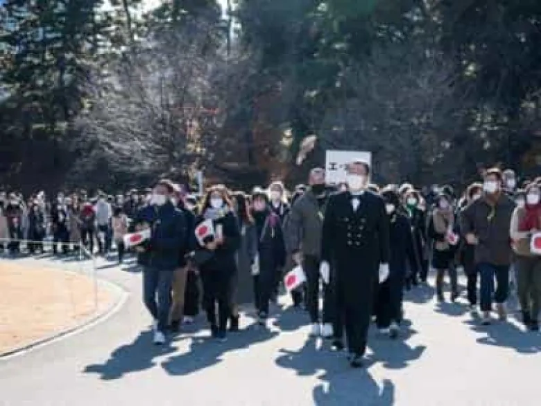 Դիմակավոր ճապոնացիները երեք տարի հետո առաջին անգամ եկել են պալատի մոտ՝ շնորհավորելու կայսրի Նոր տարին