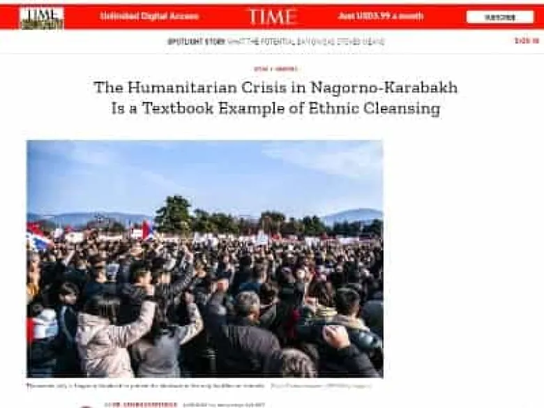 ԼՂ մարդասիրական ճգնաժամն էթնիկ զտման դասագրքային օրինակ է. Արմեն Սարգսյանի հոդվածը՝ Тime-ում