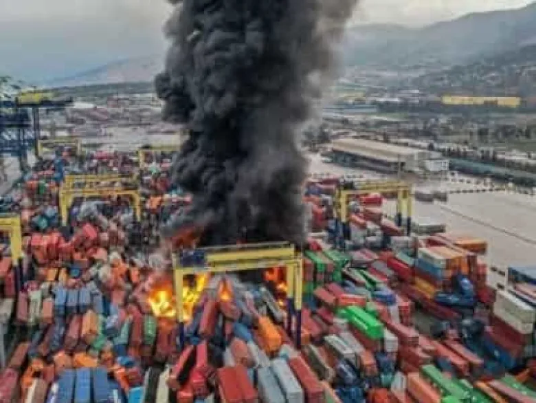 Հրդեհը բռնկվել է երկուշաբթի երեկոյան նավահանգստի տարածքում բեռներ տեղափոխող բեռնարկղերում։ Տարաները շրջվել են երկրաշարժի ժամանակ։ Հրդեհի առաջացման պատճառը դեռ հայտնի չէ։